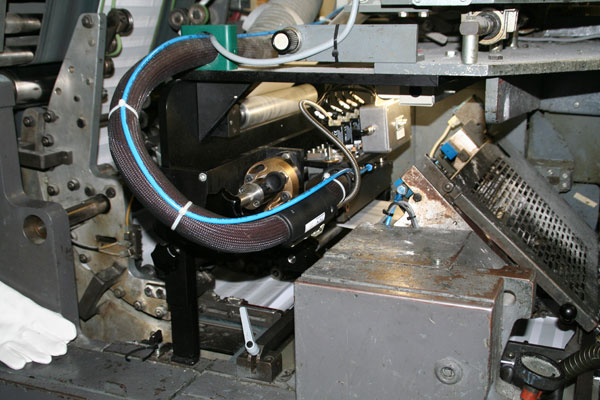 Unsere Lösung beinhaltet die Schwenk und Auszugshalterung mit Seitenverstellung, einen auf das Maschinenmodell abgestimmten Auftragskopf mit Negativ-Ventilen und optimierter Düsenleisten-Geometrie. Dazu kommt eine Auftragssteuerung und eine Maschinenanbindung, die wir mittels einer Siemens-Steuerung realisieren.Technische Daten