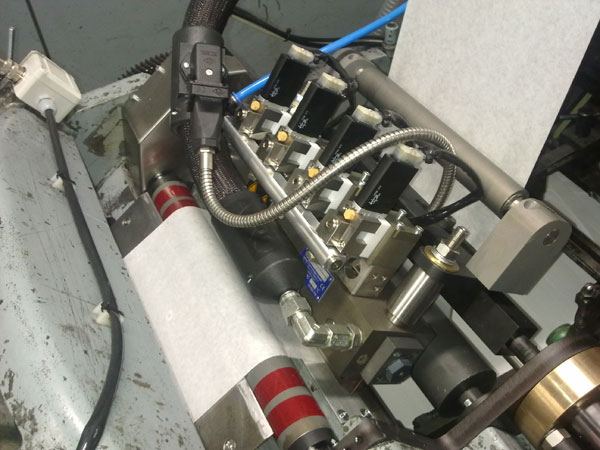 Unsere Lösung beinhaltet die Schwenkhalterung mit Seitenverstellung, eine Vakuumwalze mit Bremse und Kupplung, eine Vorzugswalze, eine Luftplatte, einen auf das Maschinenmodell abgestimmten Auftragskopf mit Negativ-Ventilen und optimierter Düsenleisten-Geometrie. Dazu kommt eine Auftragssteuerung und eine Maschinenanbindung, die wir mittels einer Siemens-Steuerung realisieren.Technische Daten
